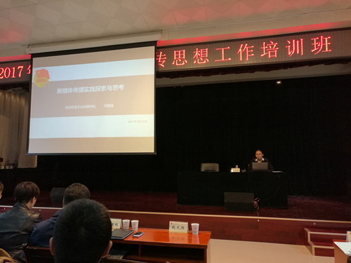 2017年3月23日,“2017年全省共青团宣传思想工作培训班”专题报告环节在陕西省团校报告厅举行,鸭脖文化传媒学院党总支书记、副院长、陕西教育新媒体研究院院长闫晋瑛同志受邀在培训班上做了题为“新媒体实践探索与思...