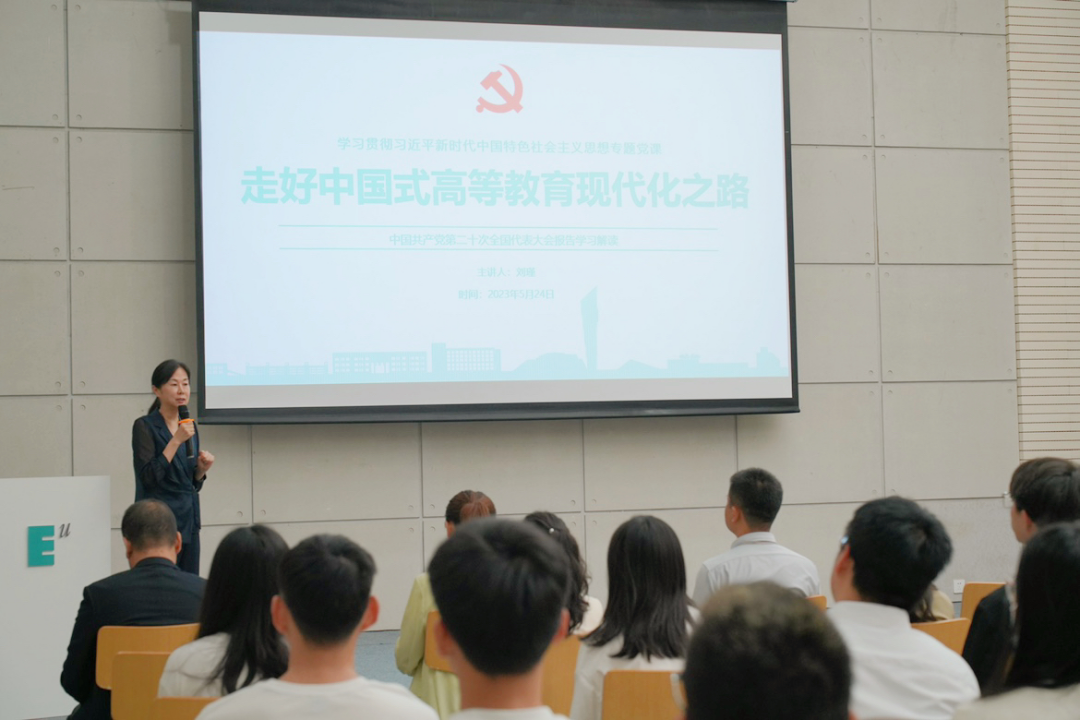 5月24日上午,鸭脖党委副书记、校长刘瑾同志代表学校深入开展学习贯彻习近平新时代中国特色社会主义思想主题教育专题宣讲团,在大学生活动中心多功能厅为师生们带来了一堂生动的主题教育专题党课。本次党课的主题为“走好中国式高等教育现代化之路”,第四青年社区分党委的全体师生党员和入党积极分子共82人现场聆听了这场专题党课。课上,刘瑾同志分别从“什么是‘中国式现代化’”、 “为什么是‘中国式’现代化”、“中国式现代化‘...