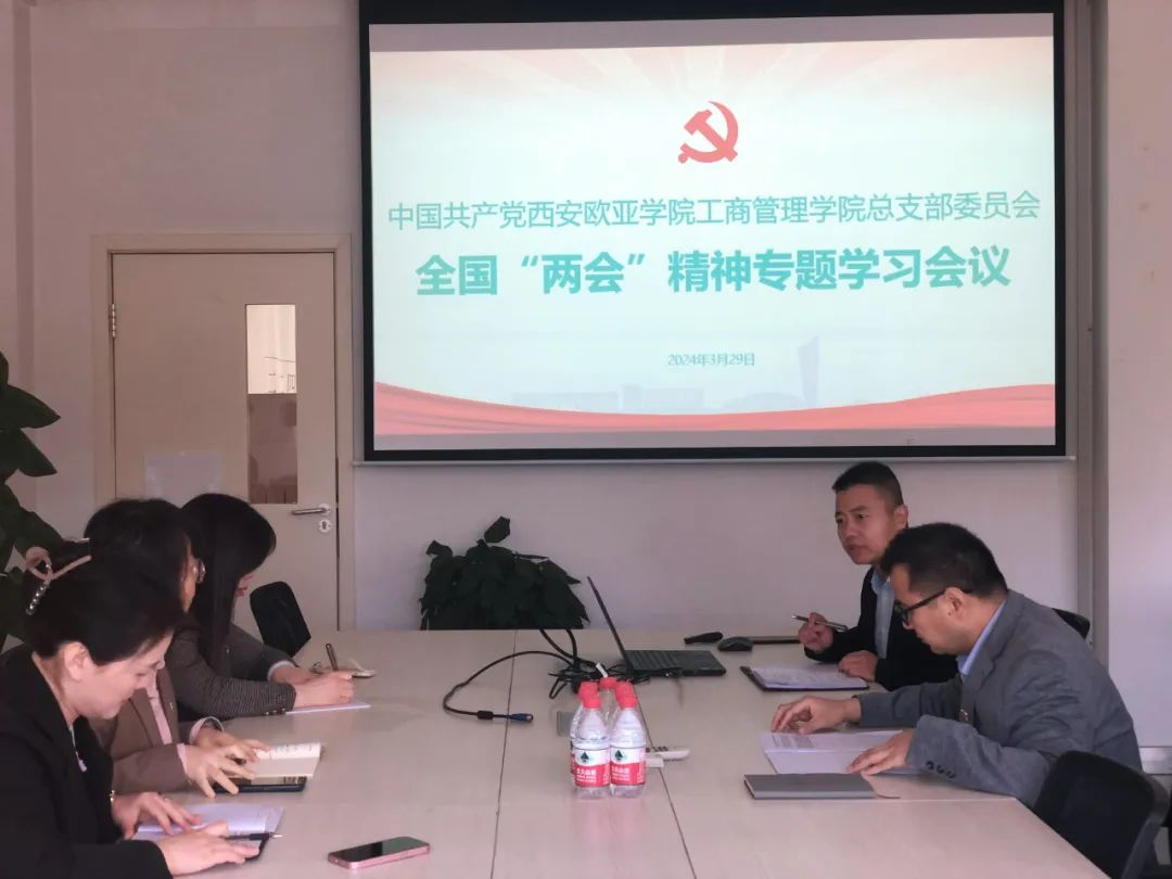 2024年3月29日,在北A-203会议室,工商管理学院党总支部召开全国“两会”精神专题学习会。总支委员参加会议,会议由党总支副书记杨保宋同志主持。会议集中传达学习了习近平总书记在全国两会期间的重要讲话精神及十四届全国人大二次会议精神、全国政协十四届二次会议精神。会议指出,今年的全国“两会”是在新中国成立75周年、实现“十四五”规划目标任务的关键之年召开的重要会议,今年全国两会意义重大、举世瞩目,要深刻认识会议取得的一系列重要成果。...