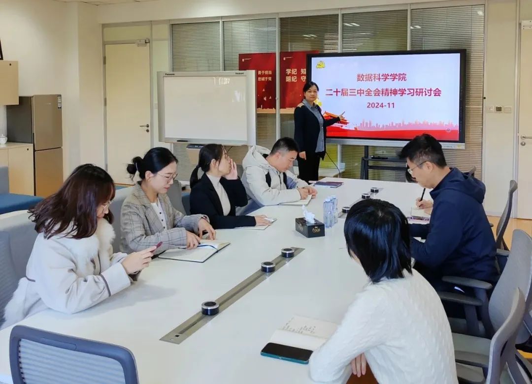 为深入学习宣传贯彻党的二十届三中全会精神,引导广大党员交把思想和行动统一到全会精神上来,把力量凝聚到立德树人,为党育人,为国育才上来,近日,数据科学学院党组织以支部为单位,采取书记讲党课、召开专题学习研讨会等方式,深入学习贯彻党的二十届三中全会精神活动,旨在深入领会全会精神,凝聚共识,推动各项工作高质量发展。会上,各支部书记从会议概况、全会精神的核心要点、主要领域改革部署、深化改革的原则与要求、历史意义和深远影响等五个方面对党的二十届三中全会精神做了全面解读,...