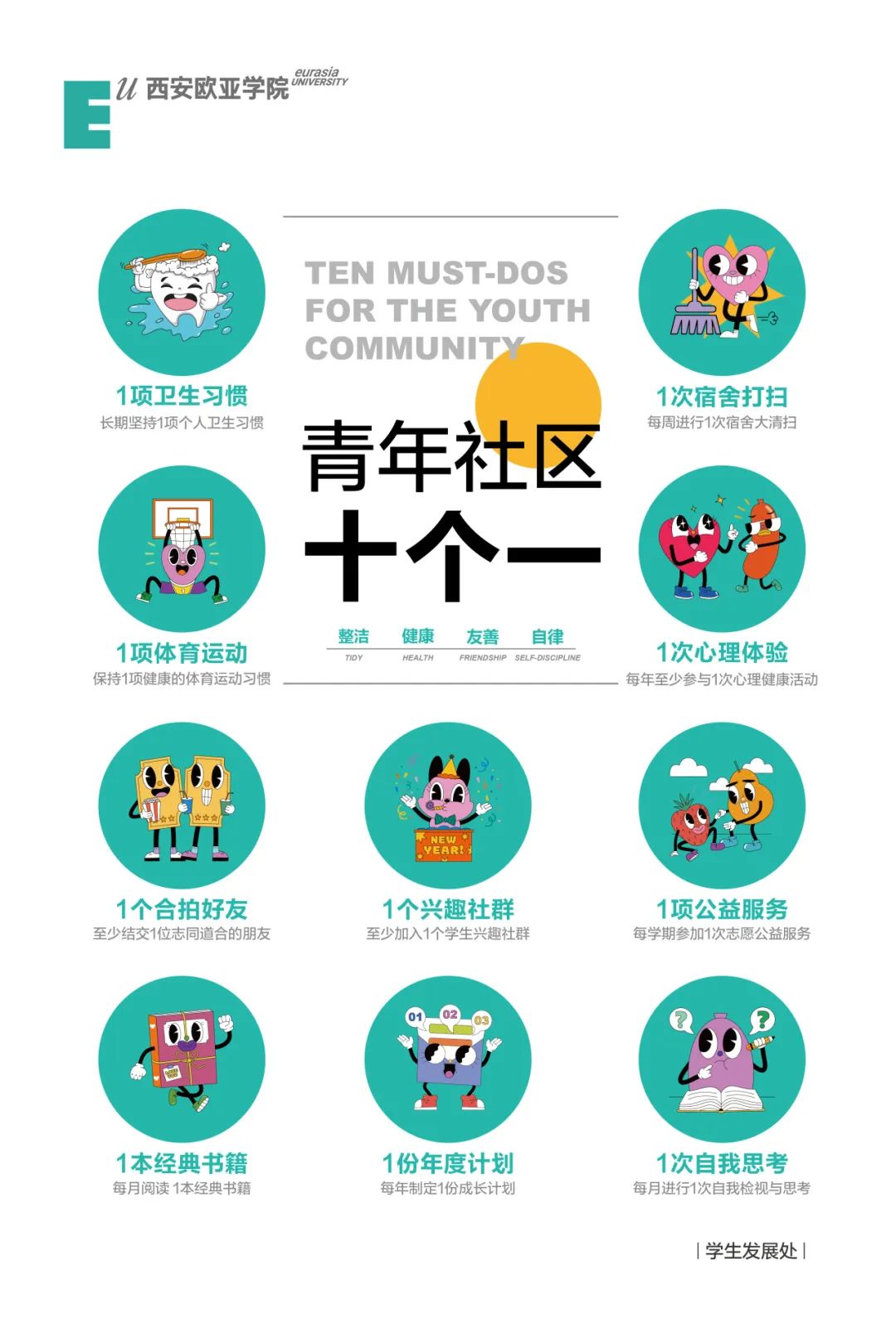“1项卫生习惯”“1次宿舍打扫”让我们注重卫生,健康生活;“1项体育运动”让我们强身健体;“1次心理体验”让我们关注自己的内心世界;“1个合拍好友”“1个兴趣社群”让我们拓展社交,结识好友;“1项公益服务”让我们奉献爱心;“1本经典书籍”让我们在阅读中成长;“1份年度计划”让我们明确人生方向;“1次自我思考”让我们在思考中进步。“十个一”是对生活多维度的捕捉与呈现。为积极践行“十个一”,助力学生全面发展,在第二青年社区分党委的指导下,...