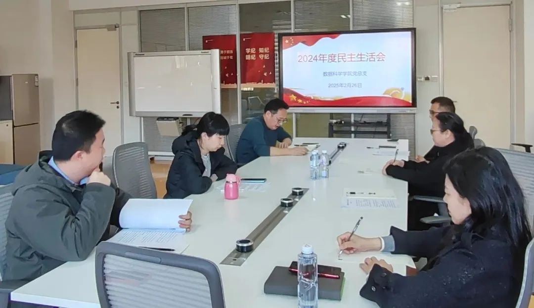 根据校党委《关于开展2024年度基层党组织组织生活会和民主评议党员工作的通知》安排,数据科学学院党总支于2月26日召开2024年度民主生活会。会议以“深入学习贯彻习近平新时代中国特色社会主义思想,巩固深化党纪学习教育成果,综合发挥党的纪律教育约束、保障激励作用,加强党组织自身建设,提升党组织的凝聚力和战斗力,以高质量党建推进学院高质量发展”为主题,认真查摆突出问题,认真进行党性分析,严肃开展批评与自我批评,提出务实有效的整改举措,...