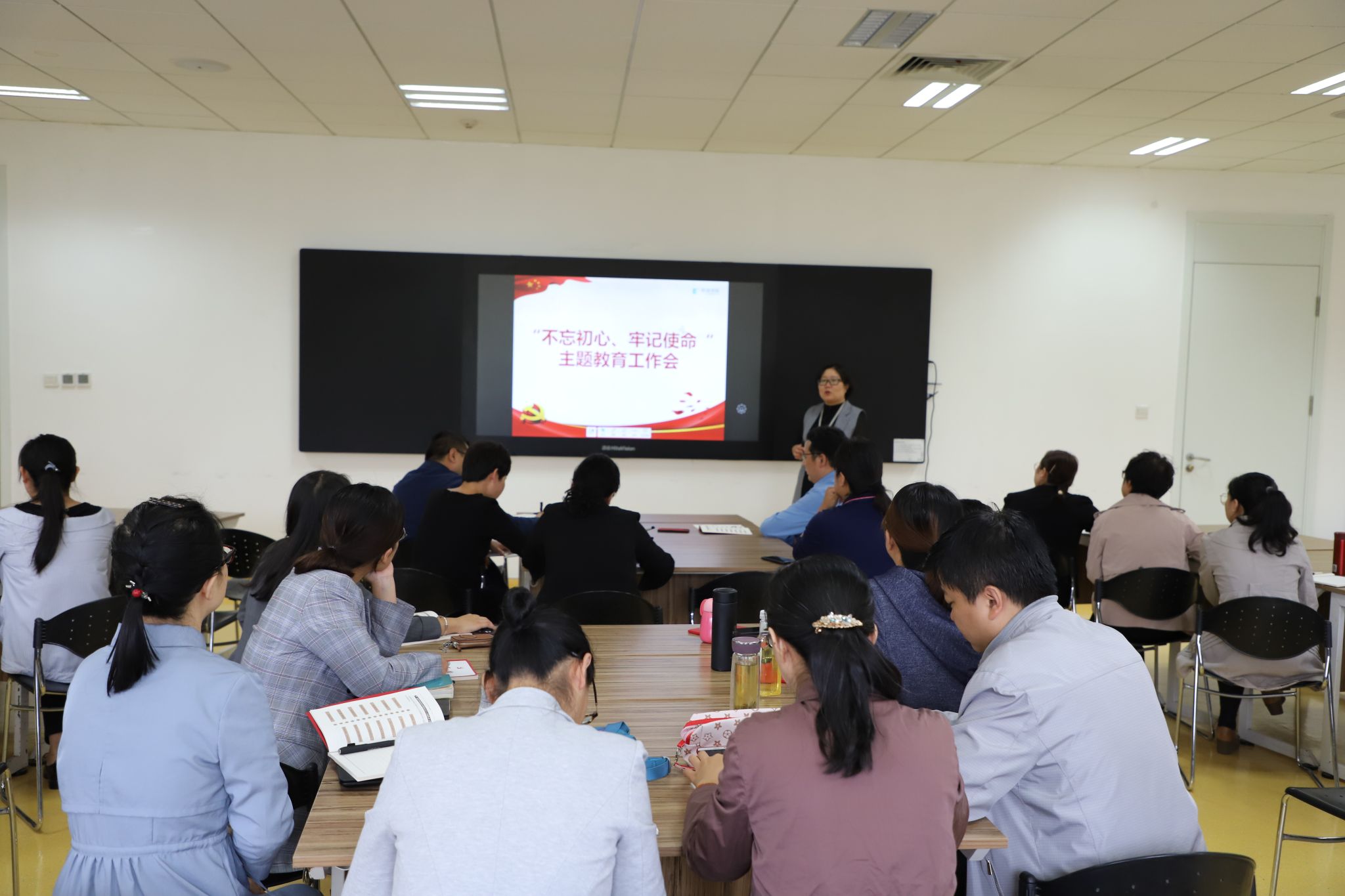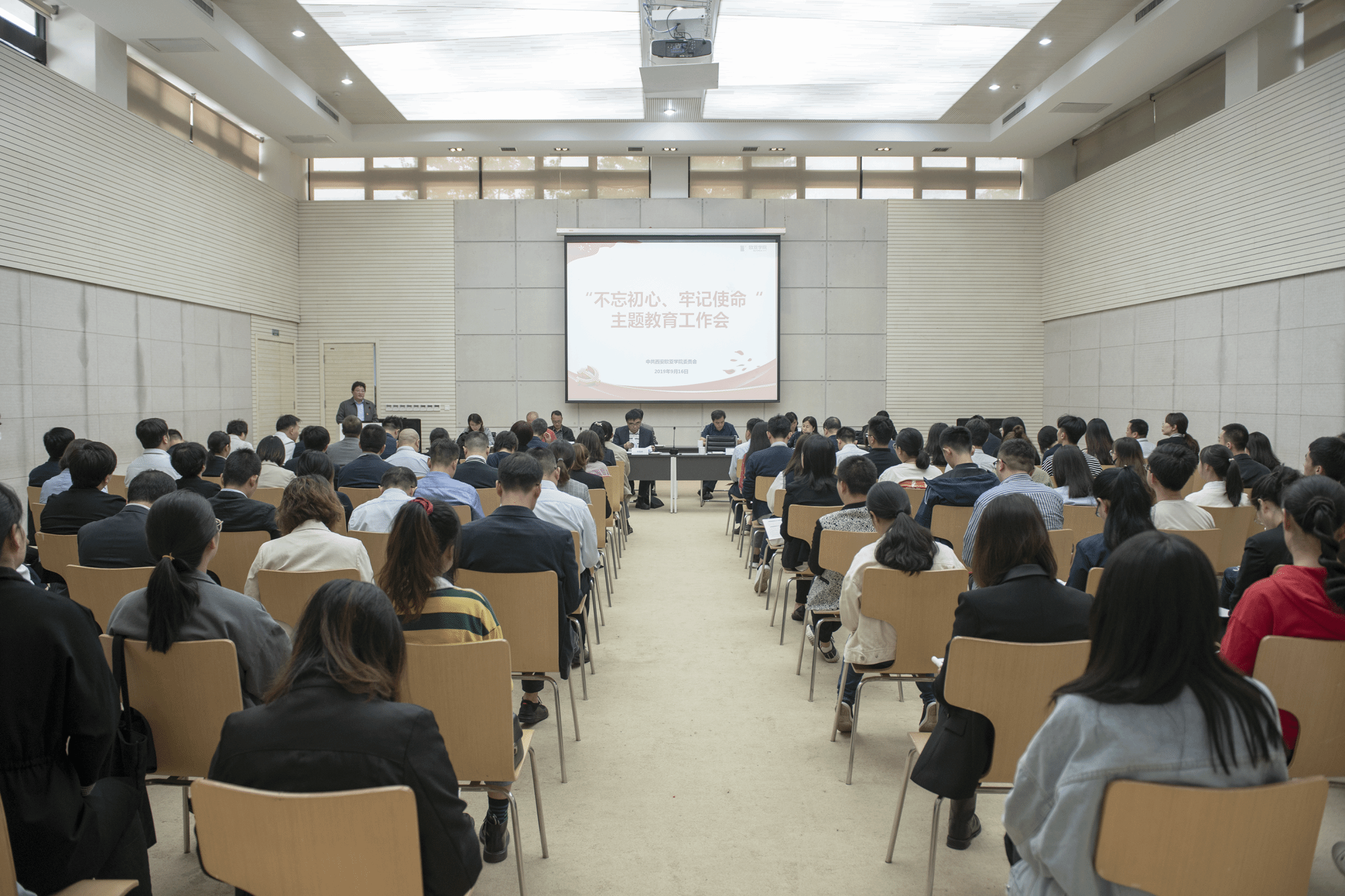 9月18日下午在教学南区D203教师培训室召开了分院全体党员大会,分院总支书记王艳同志作了“不忘初心,牢记使命”主题教育专题宣讲。会议由总支副书记马亚林同志主持,31名教工党员参加了会议。 在宣讲会上,...