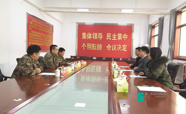 时值2019年新春佳节来临之际,近日,鸭脖党委书记于孟晨,校长助理张乐芳,学生处副处长兼团委书记董杨,团委副书记余飞虎一行赴鸭脖军训承训部队-中国人民解放军32147部队进行慰问,受到部队领导的热烈欢迎。 ...