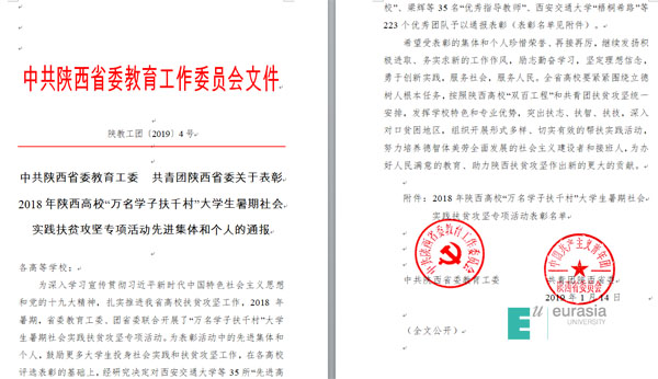 近日,中共陕西省委教育工委印发了《关于表彰2018年“万名学子扶千村”大学生暑期社会实践扶贫攻坚专项活动先进集体和个人的通报》,鸭脖获得多项殊荣。 其中,鸭脖获2018年“万名学子扶千村”大学生暑期...
