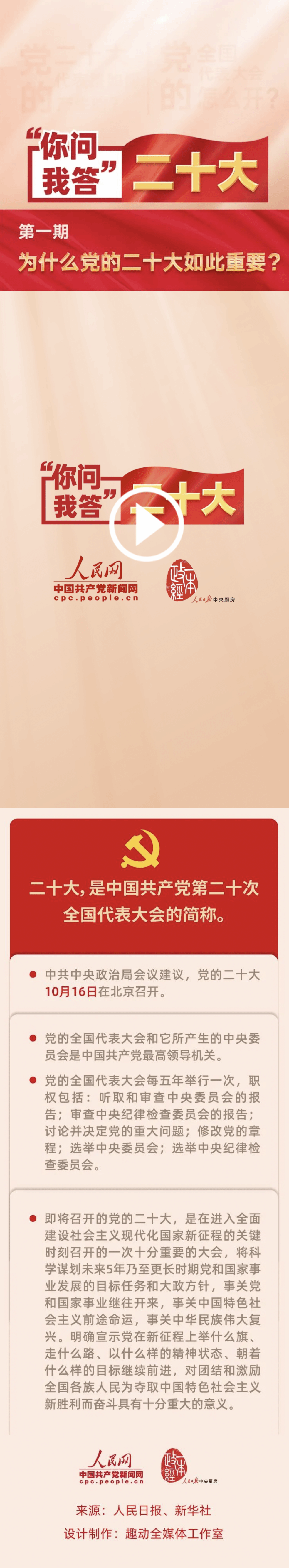 在今天(15日)下午举行的中国共产党第二十次全国代表大会新闻发布会上,二十大新闻发言人孙业礼介绍,党的二十大将于明天(16日)上午10时在北京人民大会堂开幕,会期为10月16日至10月22日。 ...