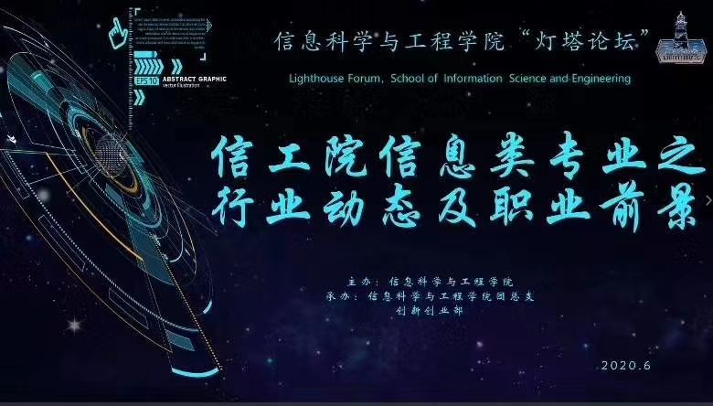 6月14日下午7点至9点30,永利官网第二期灯塔论坛于腾讯会议APP举行。本次活动主题为“信息类专业行业动态及职业前景”,邀请了永利官网信息类专业优秀校友与在校师生进行实践反馈和经验分享,致力于提高学生的专业意识,帮助学生明确未来职业发展的趋势与挑战,以促进专业良性发展,树立学生专业学习和职业前景信心。
