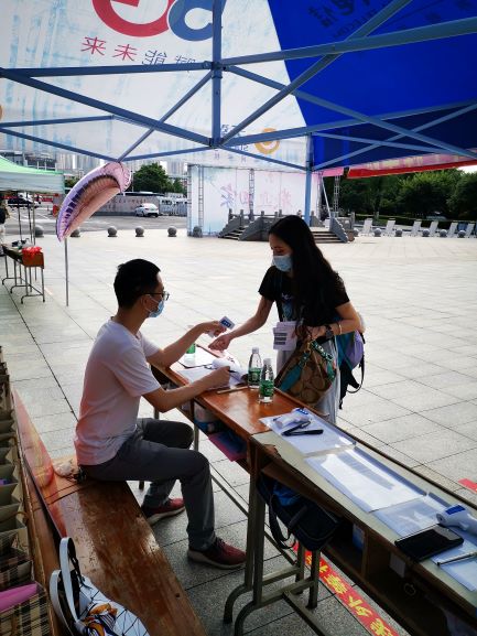 每一名到校学生先在学校门口经过消毒、身份核验、体温测量、口罩更换等初步程序,再前往学院报到点办理体温复测、查看电子健康绿码和防疫行程码、收集复学前21天健康卡、物资发放等报到手续。整个流程快速高效,严谨规范,井然有序。