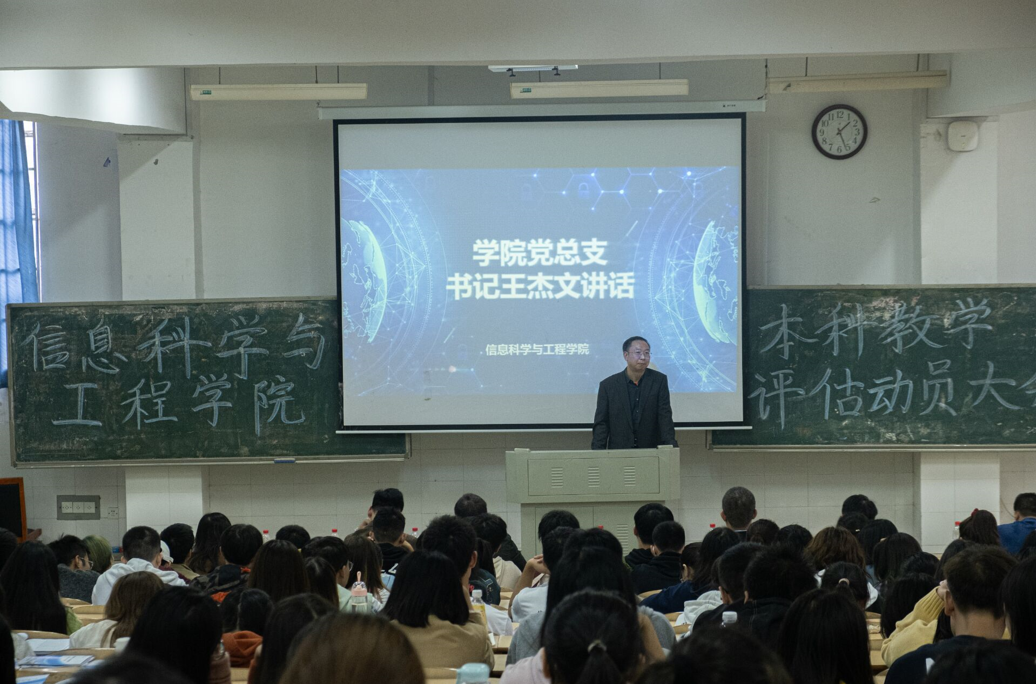 随后,党总支书记王杰文再次阐明了评估工作的重大意义,并借用真实事例强调文明行为规范。他希望同学们能充分认识审核评估工作的重要性,全面深入了解和掌握审核评估的指标体系,进一步统一思想,凝心聚力,全力以赴做好审核评估工作。