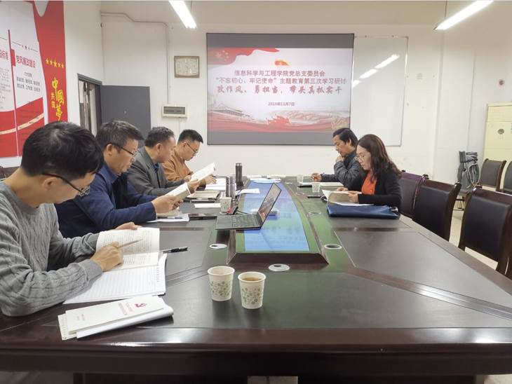11月7日下午,永利官网党总支委员在玉衡楼北栋407召开主题教育第三阶段“改作风、勇担当,带头真抓实干”集中学习研讨会。学校党委主题教育巡回指导组谭玉兰、张建国莅临指导。会议由学院党总支书记王杰文主持。