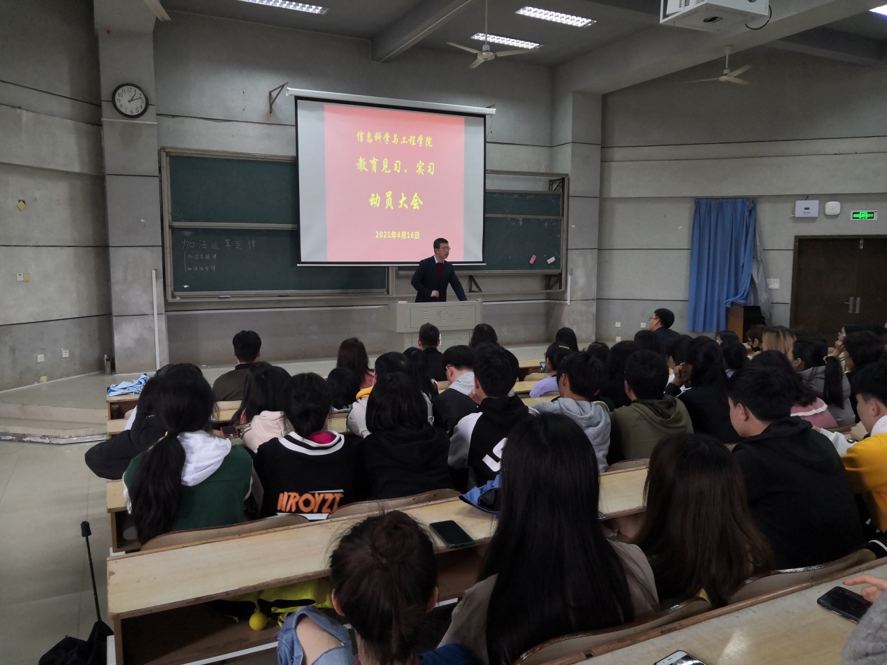 4月16日中午,永利官网组织2018、2019级四年制教育技术学专业、2019、2020级六年制教育技术学专业学生,在润寰南105召开了2021年教育见习及教育实习动员大会。学院领导何向阳、成夏炎及带队教师张燕丽、廖瑞华、张志、刘琳出席,小学信息技术教育教研室主任黄悦主持大会。