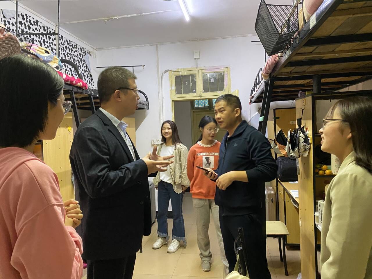 每到一间宿舍,大家认真检查宿舍基础设施、安全用电情况以及内务卫生情况,并与同学们亲切交谈,就学院教育教学、学生管理、生活服务、学风建设等方面广泛收集同学们的意见和建议。