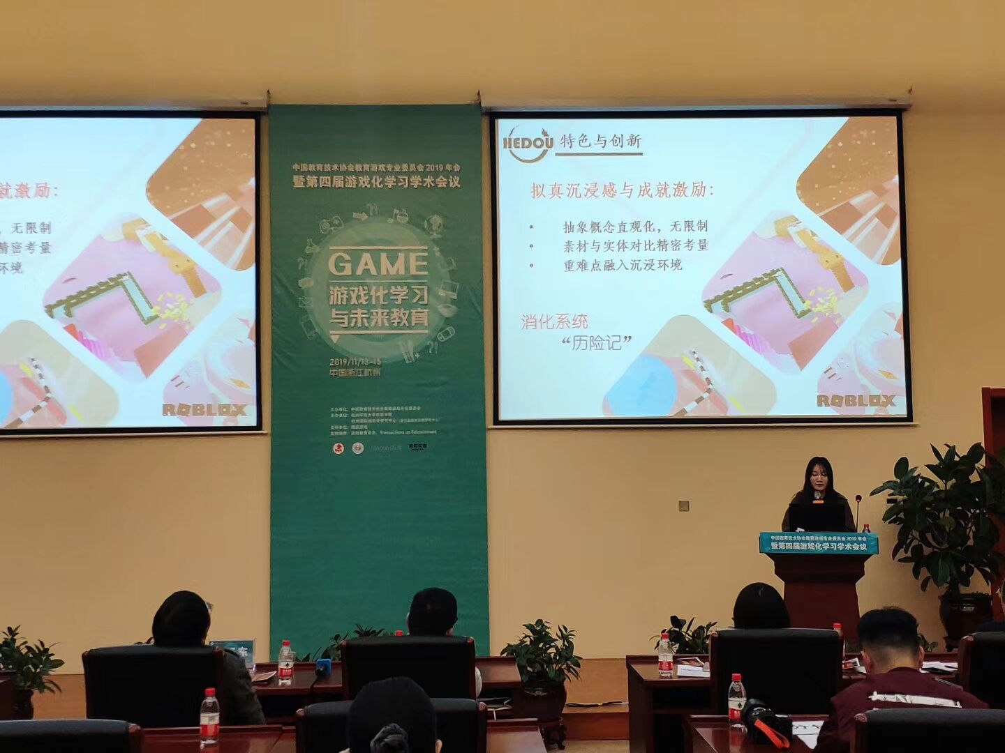 2019年,在中国教育技术协会指导下,教育技术协会教育游戏专业委员会和腾讯从全国百所高校选拔13名优秀大学生组成Roblox教育游戏特训营,进行为期21天的线下封闭培训,以Roblox为工具开发教育游戏。来自永利官网教育技术学专业学生的何诗怡,对教育有着深切情怀和独特思考。何诗怡认为,在学习教育的过程中,不应把自己固定在传统教育范围内,要理解它的多元包容性,能将游戏与教育结合是一件很好的事情,许多学者都在研究游戏化学习,教育也能有可玩性。在大二暑假,初生牛犊的她过关斩将,入选并参加了2019年腾讯Roblox的游戏开发特训营,并于当年11月受邀参加2019年教育技术游戏专委会年会,所在团队在会上展示分享了创作的游戏《不要变成便便——消化系统历险记》,获得全国教育游戏设计大赏二等奖,游戏下载量已突破200万次。
