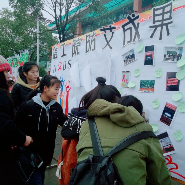 活动前期,信息科学与工程学院青年志愿者协会就防艾心得、防艾照片等基本材料进行收集与筛选,提前布置好活动展板。展板布置以防艾图标为重要标识,并增设留言板,方便学生进行留言,表达自身对防艾工作的看法。