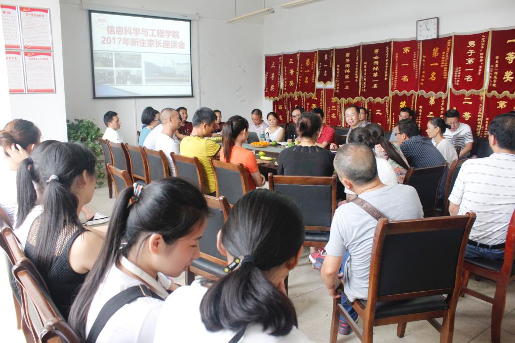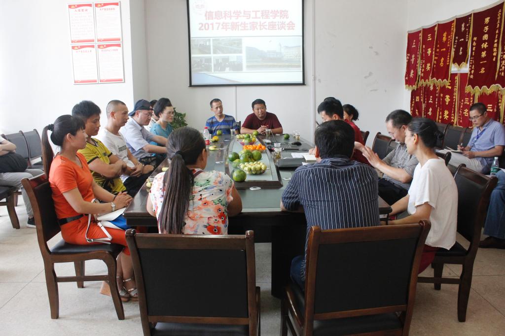 通讯员(罗诗)为了搭建与新生家长沟通的良好平台,9月9日下午3点,信息科学与工程学院在实验楼A栋404召开2017级新生家长座谈会。信息科学与工程学院院长李勇帆、副院长田祖伟和王建军、党总支书记王杰文、党总支副书记罗祥云、学工办李豪杰和唐瑞鸿老师及新生家长代表出席本次座谈会。
