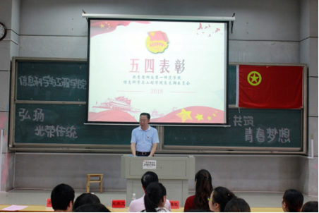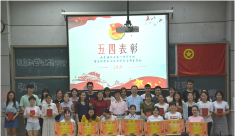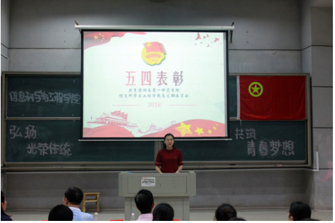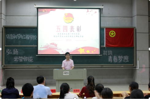 (通讯员 唐瑞鸿 赵越 罗德琳)5月16日晚,共青团3044am永利官网信息科学与工程学院2017-2018学年总支部委员会工作总结暨五四表彰大会在玉衡楼报告厅(二)举行。校长助理、信息科学与工程学院院长李勇帆、学院党总支书记王杰文、党总支副书记易利、团总支书记唐瑞鸿出席会议,2017-2018届全体学生干部及助理,各班级学生代表共计200余人参加此次会议。