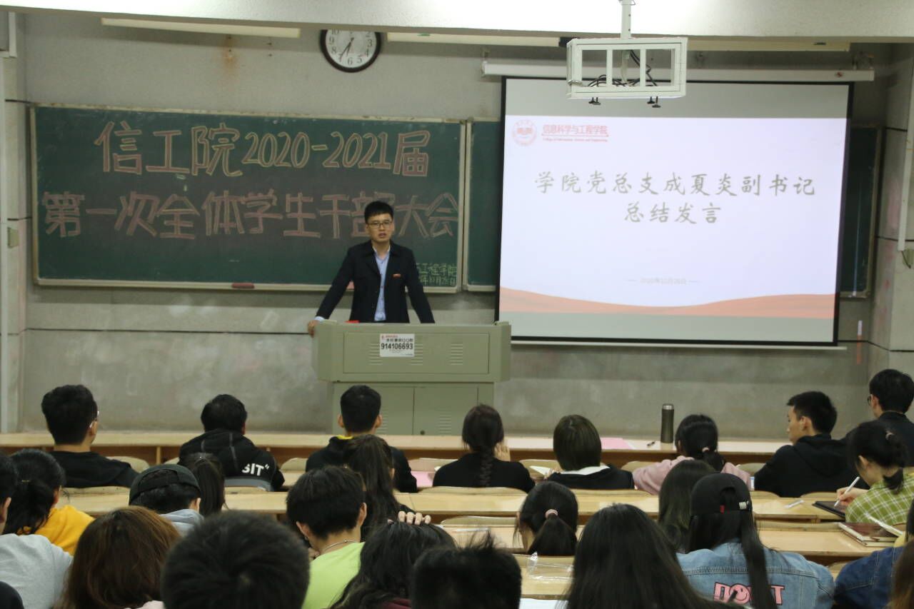 10月28日晚,永利官网在润寰南101召开2020-2021届学生干部第一次全体会议,学院党总支副书记成夏炎、学工办主任关红儒出席,会议由团总支学生副书记张玉鑫主持。