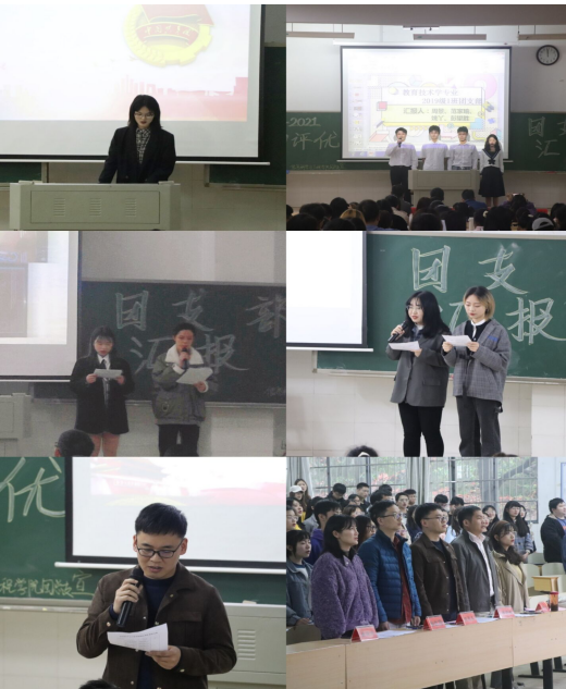 在激昂的共青团歌声中,汇报活动正式拉开序幕。各班团支部代表依次上台汇报,分别从组织建设、学风建设、综合建设和文体建设四个方面对本班团支部进行了精彩的介绍与展示。汇报过程中,各团支部采用视频、PPT等多种表现形式,充分展现了各班团结协作、积极向上的风采。