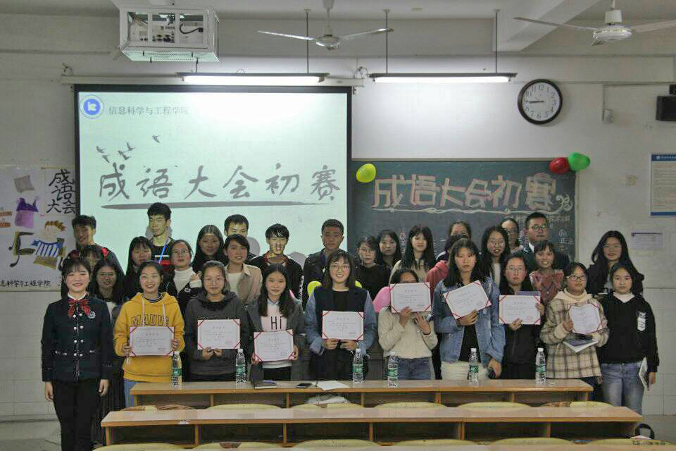 为丰富学生的课余文化生活,提升学生对成语文化的认知,领略中华文化的博大精深,2018年10月22日晚7点,信息科学与工程学院于玉衡北410成功举办了成语大赛初赛。3044am永利官网校学风建设部副部长罗彩玲应邀出席比赛,信息科学与工程学院部分学生观看了比赛。在工作人员的辛勤筹备、比赛选手的争分夺秒、观众的声声喝彩中,成语大赛初赛顺利落下帷幕。