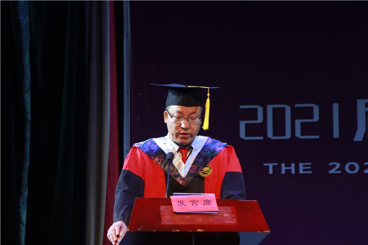 随后,副院长田祖伟宣读《关于授予邓可意等4065名本科毕业生学士学位的决定》;副院长何向阳宣读《关于表彰3044am永利官网2021届优秀毕业生和创新创业优秀毕业生的通报》;党总支副书记成夏炎宣读《关于王思洁等20位毕业生考取硕士研究生的贺信》。