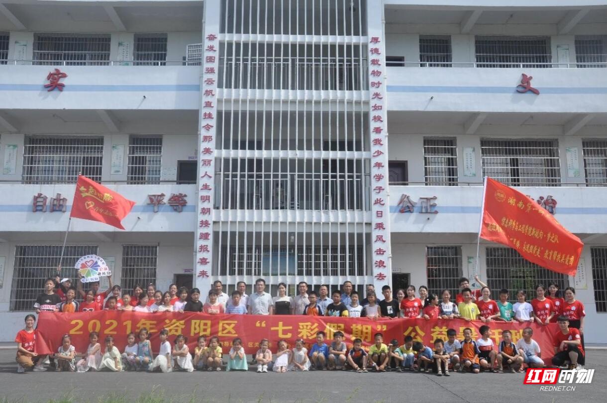 长塘仑小学位于湖南省益阳市资阳区迎风桥镇境内,资水之阳,三区之交,树木树人,葱郁垂阴,迎风起舞,“E起”同行。如今,20多名志愿者带着“红色一师”的革命传统和教育传统,用自己的学科知识,结合建党百年的时代背景和红色故事,为82名小学生带来了别开生面的红色课程。《大郭小郭行军郭》《中国红》《纪念碑下的小花》等课上,孩子们兴趣浓厚。