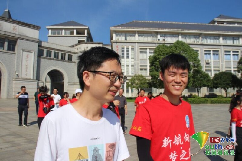图为在出发前学院领导老师给队员们加油鼓劲儿。中国中青网通讯员 欧阳健 摄