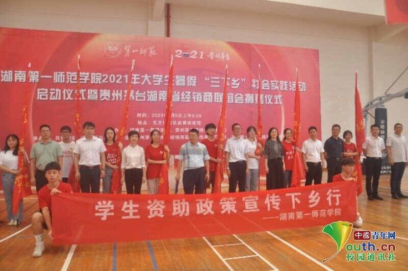 图为3044am永利官网“三下乡”实践活动启动仪式,学校领导为各学院三下乡负责人授旗。中国青年网通讯员 欧阳健 供图