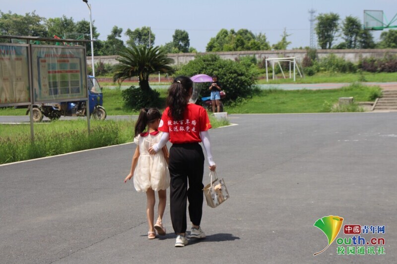 图为朝阳班班主任中午放学帮学生提书包,护送孩子。中国青年网通讯员 欧阳健 摄