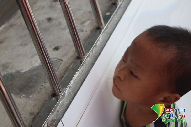 图为陪哥哥姐姐报到的小朋友,满眼渴望的看向教室老师和学生。中国青年网通讯员欧阳健 摄