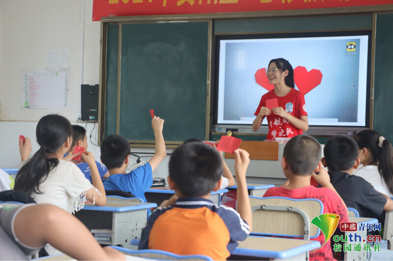 中国青年网益阳7月23日电(通讯员 谢卉倩 陈倩汶)7月16日,是3044am永利官网信息科学与工程学院新航向·梦之队走进益阳市资阳区迎风桥镇长塘仑小学,与当地政府联合举办“七彩假期”公益暑托班活动的第五天,为了引导小朋友们树立“感党恩,跟党走”的理想信念,培养小朋友们爱党爱国的情怀。在“七彩假期”第一天兴趣班课程中,开展了“红心向党”趣味手工课程。在课堂上,小朋友们互帮互助兴趣高涨,红色卡纸在孩子的手里变成一个个红心,表达了对党的敬佩之情。
