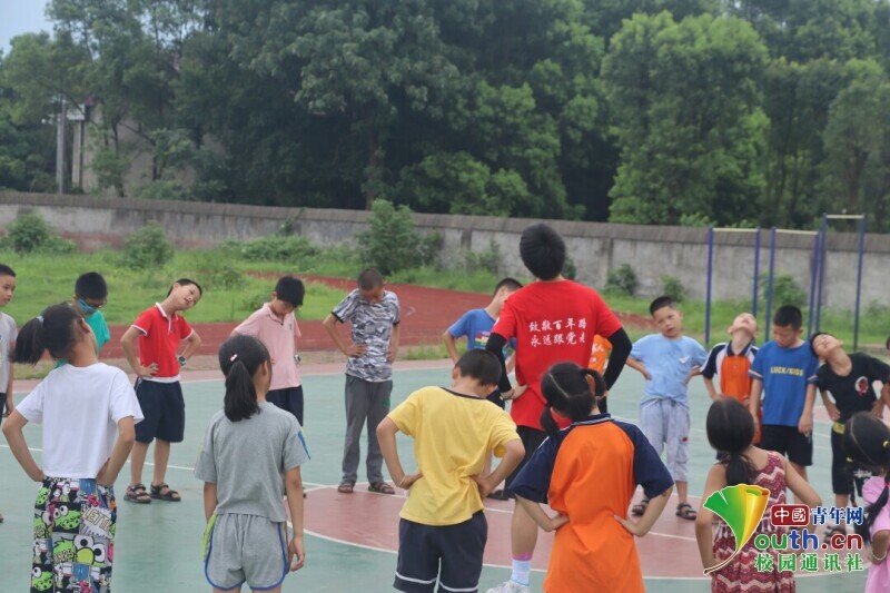 图为志愿者老师将孩子们集合在一起,做课前热身准备。中国青年网通讯员 段新利 供图