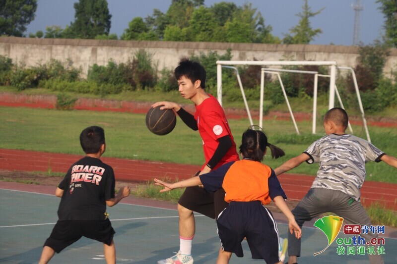 图为志愿者和孩子们一起打篮球。中国青年网通讯员 段新利 供图