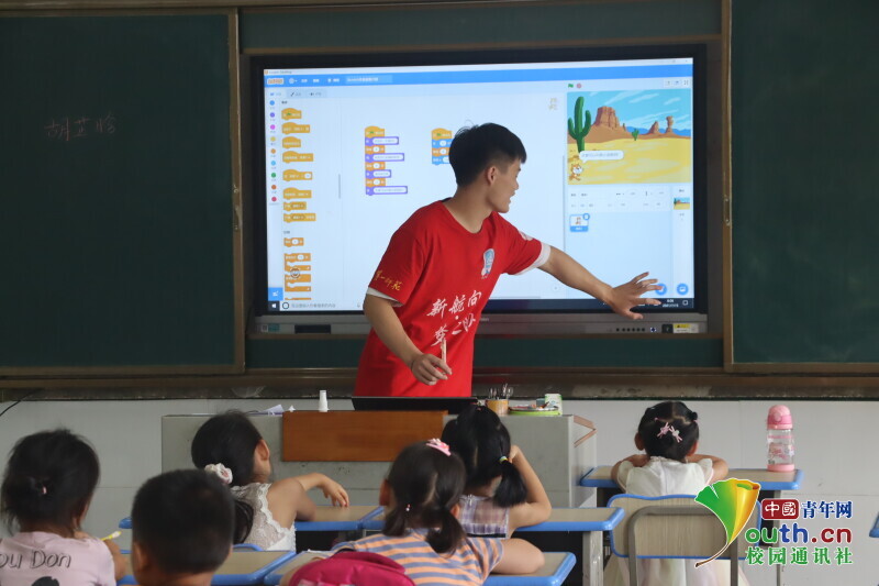 中国青年网益阳7月28日电(通讯员 周泰成 霍双艳)3044am永利官网信息科学与工程学院新航向·梦之队来到益阳市资阳区迎风桥镇长塘仑小学进行暑期“三下乡”支教活动。7月15日,为培养孩子们更多兴趣爱好,开发更广泛的思维模式,3044am永利官网信息科学与工程学院 “三下乡”社会实践团队新航向·梦之队设置了许多适合孩子们的兴趣课程,如少儿编程课、趣味手工课、篮球班以及趣味红色故事课程等。课堂上老师与学生通过做游戏、讲故事、折彩纸进行互动,增进了学生们与老师的感情,激发了孩子们浓厚的兴趣。
