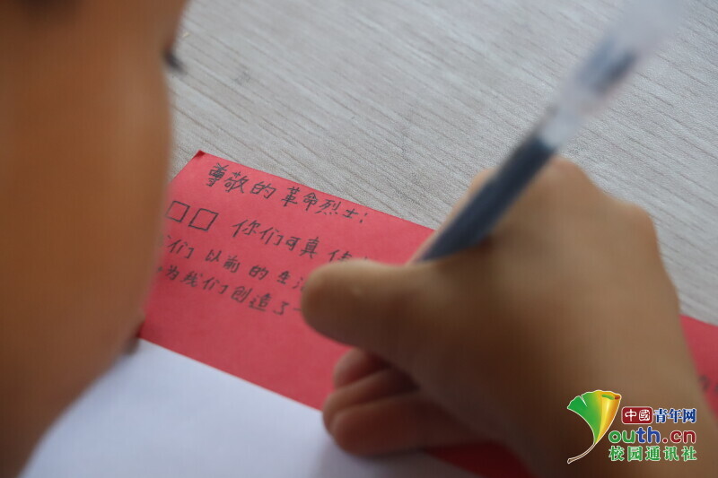 图为学生上完红色故事课后给革命烈士写信,展开一场跨越时空的对话。中国青年网通讯员 马唯一 摄