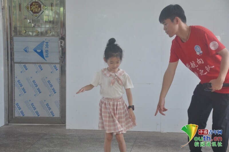 图为志愿者正在台上指导舞蹈班孩子的动作。中国青年网通讯员 马唯一 摄