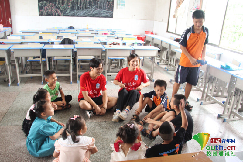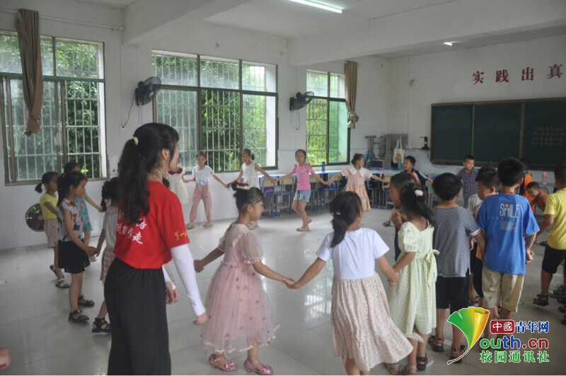 图为新航向·梦之队志愿者与孩子们正在进行丢手绢的趣味游戏。中国青年网通讯员 何星逸 摄