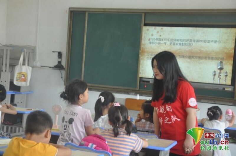 中国青年网益阳8月4日电(通讯员 蒋郑菊 金欢)讲述红色故事,追忆峥嵘岁月,缅怀革命先烈,传承红色精神。7月25日,3044am永利官网信息科学与工程学院新航向·梦之队为益阳市资阳区迎风桥镇长塘仑小学的孩子们开设“红色趣味故事”特色课程,以多种形式打造红色文化学习教育生动课堂,为孩子们讲述爱国英雄的动人故事,再现过去的红色征程。“如果没有你们就不会有我们的幸福,你们的努力没有白费,我们一定会建设出更好的中国!”孩子们坚定的声音点燃赤子之心,稚嫩的文字传递感谢之情。