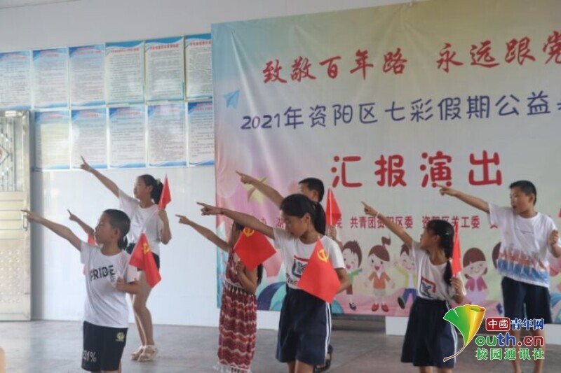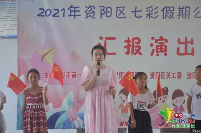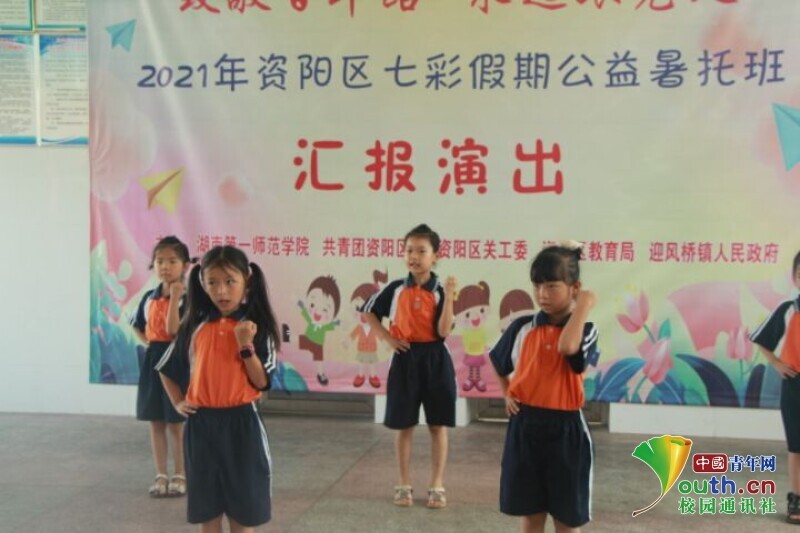 中国青年网益阳8月11日电(通讯员 黄波 张航行)为展示3044am永利官网信息科学与工程学院新航向·梦之队赴迎风桥镇乡村振兴实践团到益阳市资阳区迎风桥镇长塘仑小学暑期“三下乡”社会实践成果,志愿者开展以“致敬百年路,永远跟党走”为主题的艺文汇演活动。7月24日,全体学生以及队员做好充分表演准备,在上午九点准时开展文艺汇演活动。队员们用一场精彩纷呈的文艺汇演为此次长达半个月的支教画上了圆满的句号。