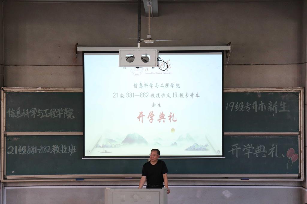 9月12日下午3点,永利官网于润寰南105举行21级881—882教技班及19级专升本新生开学典礼。学院党总支书记王杰文、副院长田祖伟、学院党总支副书记成夏炎、全体辅导员老师及21级881—882教技班与19级专升本新生、朋辈辅导员、学生干部代表参加。