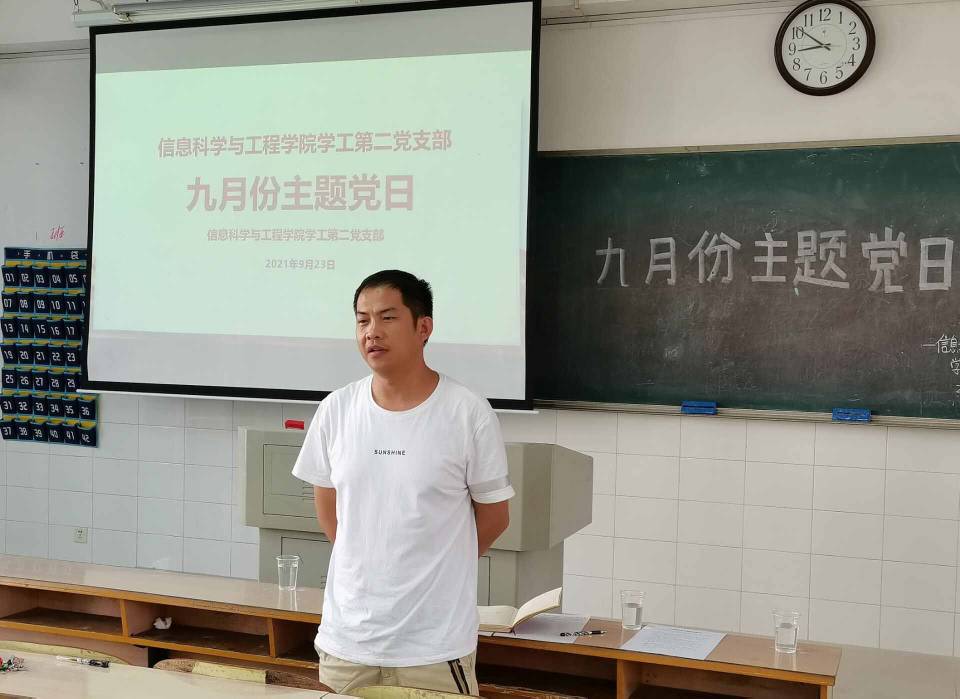 2021年9月23日,永利官网学工第一、第二党支部均采取线上与线下结合的方式开展九月份主题党日活动,彭思思、罗洵分别主持活动。参加此次活动有学工第二党支部书记李荣敬以及学生党员。
