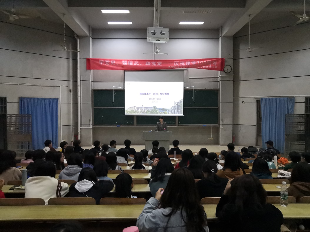 10月31日晚上,永利官网面向21级881-882教技班在怀中南110开展教育技术学(定向)专业指导活动。活动由小学信息技术教育教研室主任黄悦主讲。