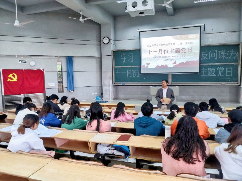 2021年11月2日,永利官网学工第一、第二党支部开展了“学习反间谍法”主题党日活动,学工第二党支部书记李荣敬老师,学工办叶晶老师和全体学生党员共同学习了《国家安全部有关负责人就<反间谍安全防范工作规定>答记者问》文件并观看了《微信陷阱》、《守护国家安全:请记住这个号码,12339》视频。此次主题党日旨在积极响应反间谍法颁布实施七周年纪念日,促使党员们在此次学习中认识到反间谍法是我国国家安全法律制度体系的重要组成部分,更加明确反间谍的必要性和国家安全的重要性。