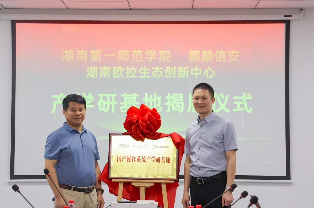 此次签约进一步推进了产教融合,未来三方将以国产操作系统产学研基地为依托,共同从教师队伍培训、实习实训基地建设、产学研协同创新等多个维度开展全方位合作,共同打造校企合作、协同发展的典范,为我国信创产业输送更多高质量应用型人才。会后,双方共同为“国产操作系统产学研基地”揭牌。