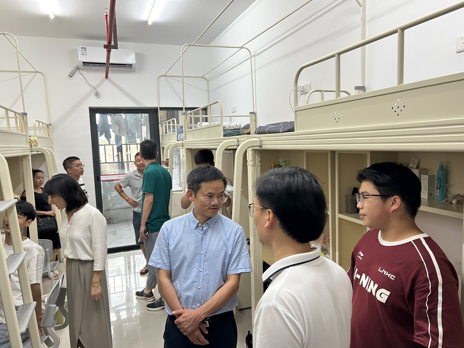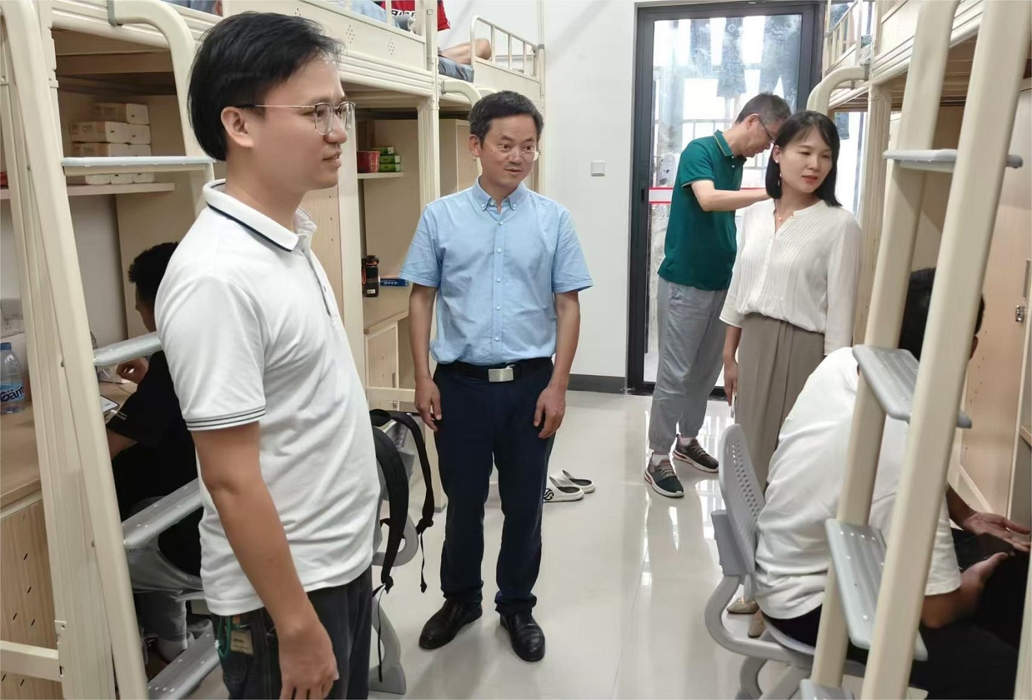下午,院领导、辅导员深入学生寝室进行走访。在走访过程中,学院领导详细询问了新生的住宿条件、饮食习惯以及初入校园的适应情况,并鼓励他们树立远大理想,积极面对大学生活,尽快融入新的集体,共同营造一个和谐友爱的宿舍氛围。