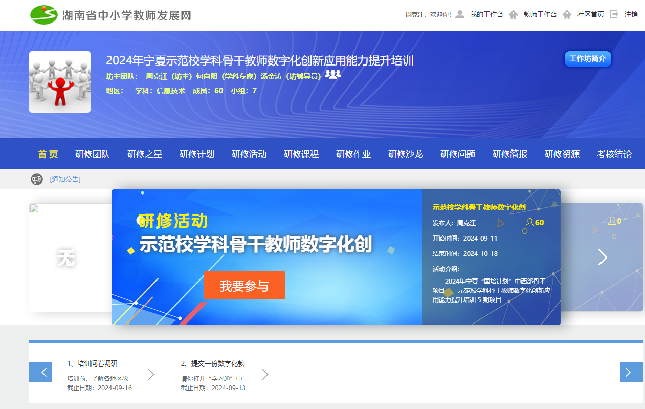 开班第一天,学员登录湖南省中小学教师发展中心教师研修平台,进行了预选课程的自主选修学习活动,学员们学习热情高,培训班管理团队的服务也受到了广大学员的好评。