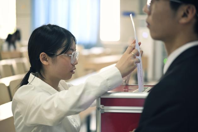 庄严的国歌声后,全体会议正式开始。陈奕和校学生会代表分别宣读了院党委、校学生会对大会的批复。学生代表施程曦宣读了《永利3044noc2023-2024学年学生会工作报告》,带领全体参会人员共同回顾了过去一年的工作历程和取得的成绩。随后,会议表决通过了新一届学生会主席团成员候选人名单、常任代表委员会委员名单以及选举相关的监票人、计票人名单等议案。各位代表投票选举产生了新一届的学生会主席团成员。