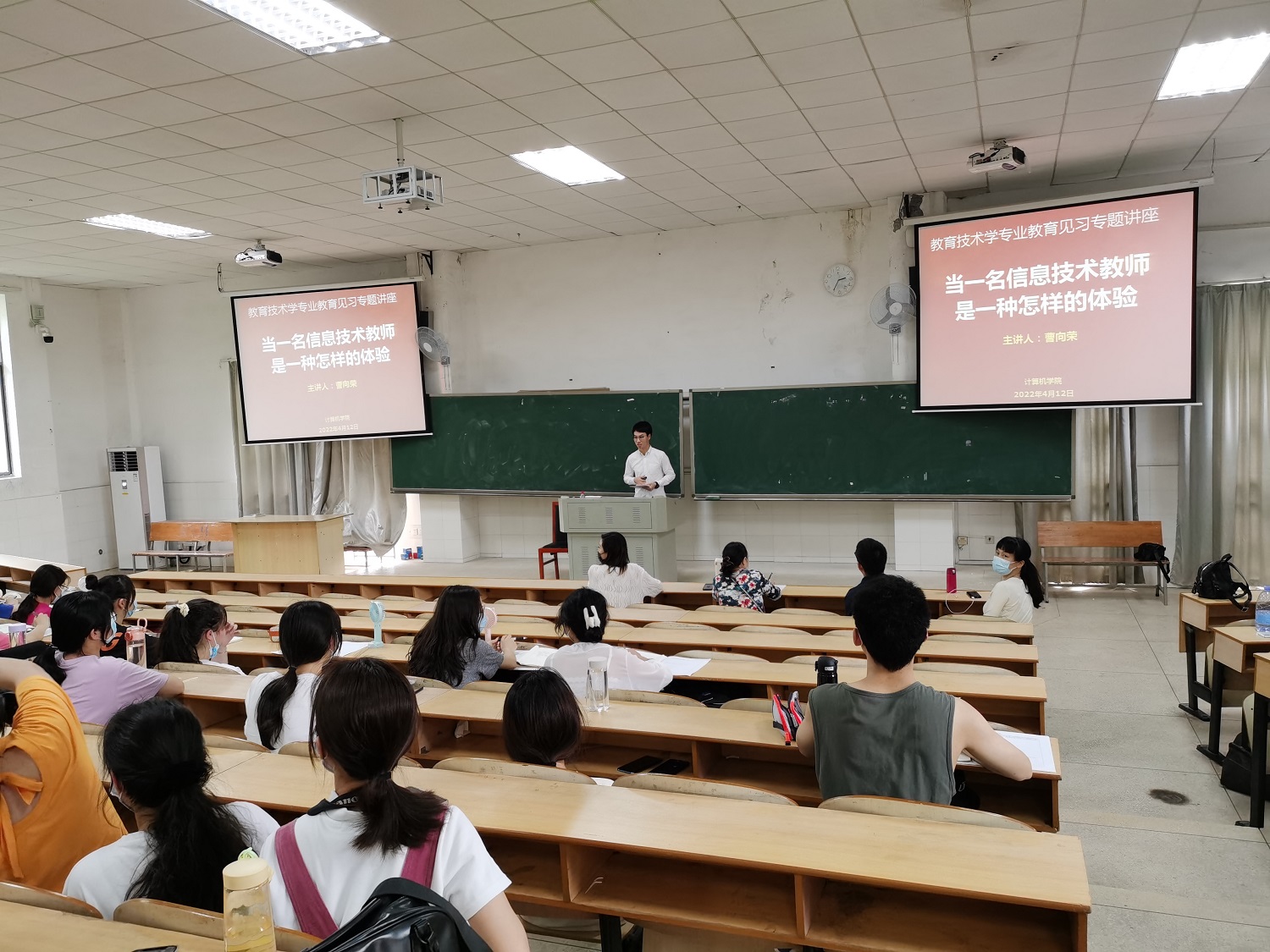 2022年4月12日,2016届优秀毕业生曹向荣受邀在玉衡南201为永利官网教育技术学专业学生开展《当信息技术教师是一种怎样的体验》教育见习专题讲座。副院长何向阳、教育见习指导老师、教育技术系部分老师、20教技1班、21级教技881及882班全体同学参加了讲座。讲座由教育技术系副主任刘琳主持,