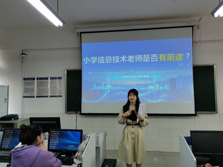 杨老师以自身经历为引,向同学们介绍小学信息技术老师的日常工作、传递了组织管理课堂的优秀经验、为同学们大学的学习、生活提出指导与建议。讲座中,杨老师细心地回答了同学们提出的一系列相关问题,消除了同学们关于“小学教育技术老师”的疑问,同学们也表示今后会加强专业理论学习,提高自身的信息素养。最后,杨老师为同学们带来一场精彩“项目研讨课”的示范课,让与会同学们对小学信息技术课有直观的感受。