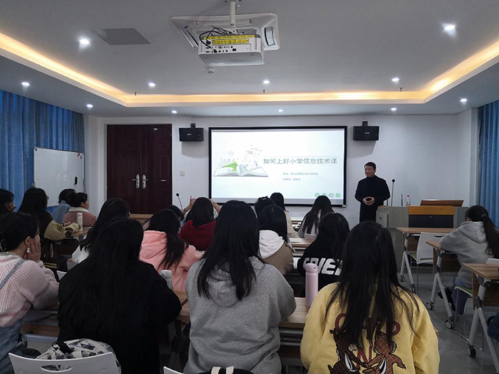 为丰富2019级六年制教育技术学专业师范生教育实习的内容和形式,帮助学生提升教师专业素养,加强对“好的信息技术课”的理解和把握,11月25日下午,天心区青园小学龚宣运老师围绕“如何上好一门信息技术课”这一主题在双创楼414展开专题讲座。