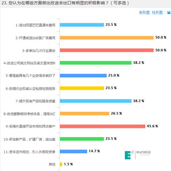物流贸易学院课程中心有关教师在合作前期,通过调查问卷的形式,对西安近百家跨境进出口企业进行了调查分析,根据数据显示的结果了解了本地跨境企业国际营销过程中的痛点,比如问到企业“在哪些方面做出改进会对出口有明显的积极影响”这一问题时,就有50%得企业选择愿意增加谷歌广告投放预算,当被问到“对谷歌推广、谷歌产品以及Facebook 等SNS营销是否感兴趣?”时,大部分企业选择了非常感兴趣,但缺乏相关人才。